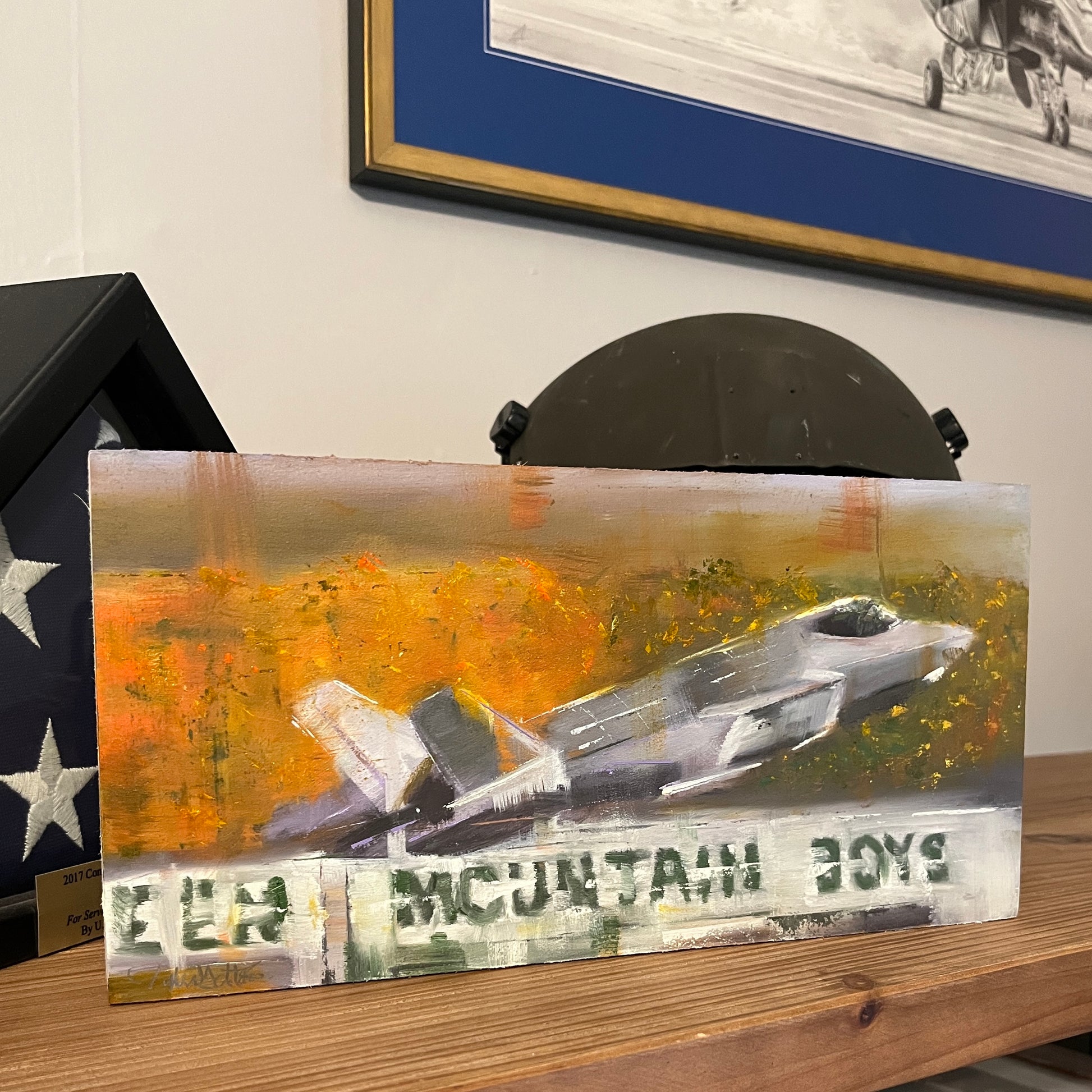 Painted with expressive textures and warm seasonal tones, this piece connects deeply with Vermont veterans, F-35 maintainers and pilots, aviation enthusiasts, and anyone who calls the Green Mountain State home. Whether displayed in a home, office, studio, or squadron space, it carries both modern fighter energy and a sense of place that only Vermont can offer.